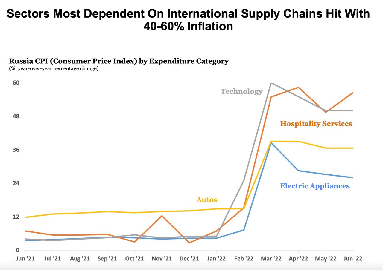 Наступил август, традиционный "месяц катастроф" в общем российском сознании – при этом по факту он таковым является далеко не всегда. Так, сейчас от августа прошла неделя, но ничего экстраординарного пока не случилось: Сибирь традиционно страдает от лесных пожаров, СВО идет по плану уже шестой месяц как, в стране четвертую неделю фиксируется дефляция, а школьники уже сейчас с печалью ожидают начала нового учебного года. Возможно, месяц действительно обойдется без острых событий – но я не исключаю, что они пойдут потом, особенно в экономической сфере. Некоторые признаки этого можно видеть уже сейчас. Сначала о дефляции. Надо отметить, что интегральный показатель уровня инфляции является штукой во многом искусственной, можно получать разные данные, манипулируя модельной потребительской корзиной и весами товаров в ней. Опять же, инфляция разная для разного потребителя: обычно для небогатых людей рост цен на продовольствие оборачивается изрядным ударом по кошельку, чего могут не заметить люди обеспеченные, у которых продовольствие не является значимой статьей расходов, в отличие от предметов роскоши или путешествий. Иными словами, она может быть разной для разных секторов и разных слоев населения, и это особенно верно для нынешней ситуации, с ограничениями экспорта, импорта и движения капитала, а также с коллапсом некоторых отраслей промышленности.